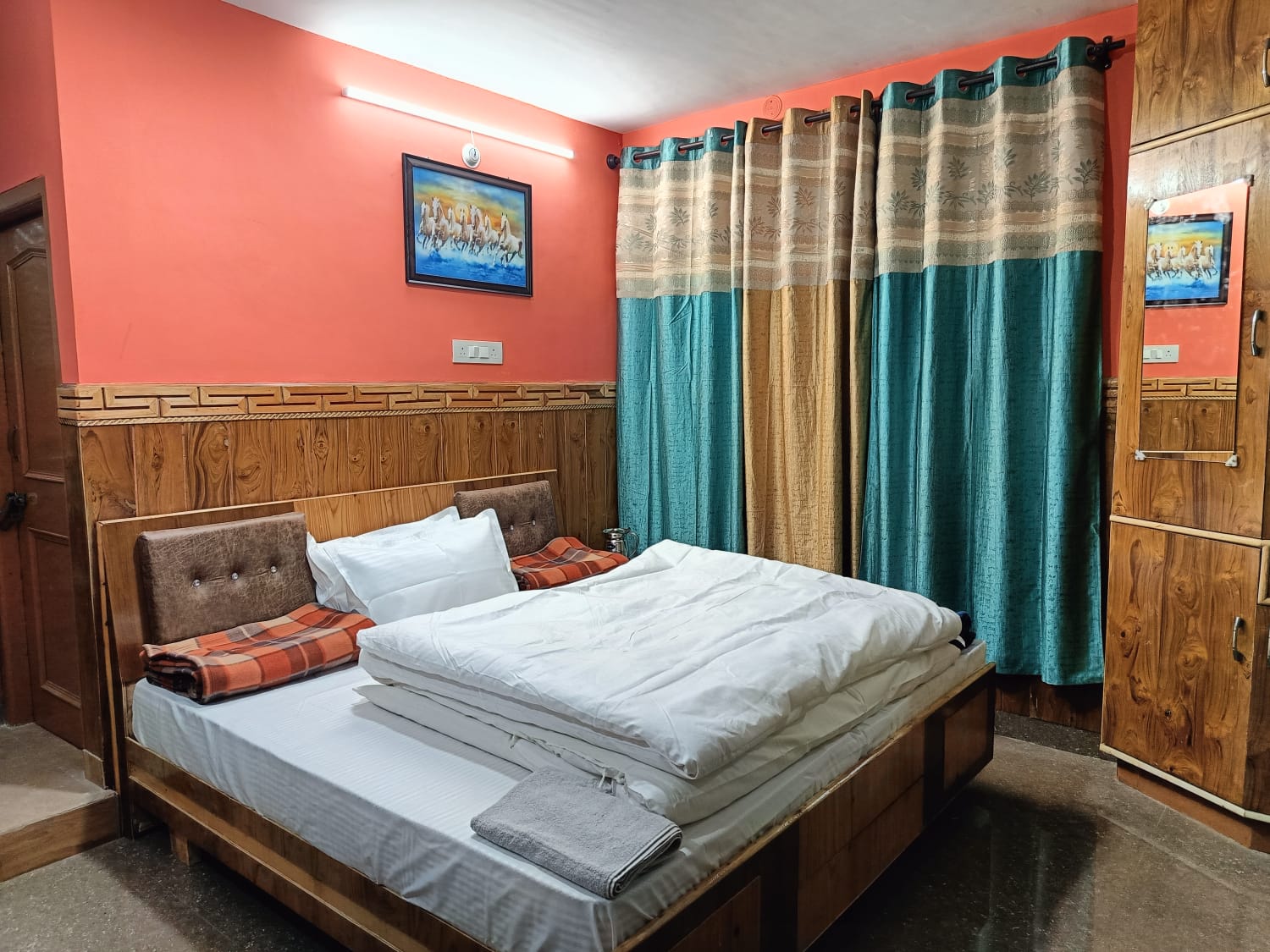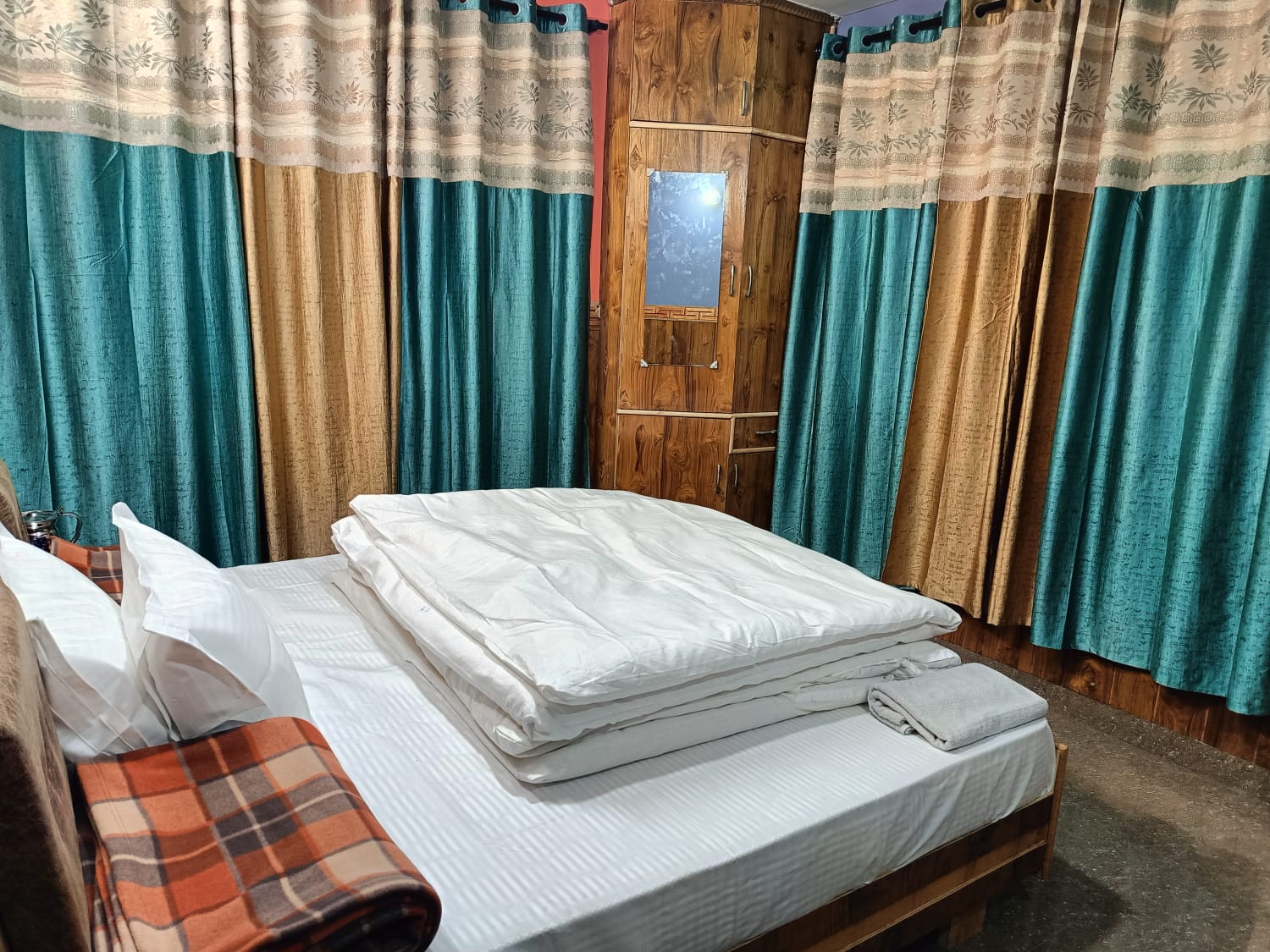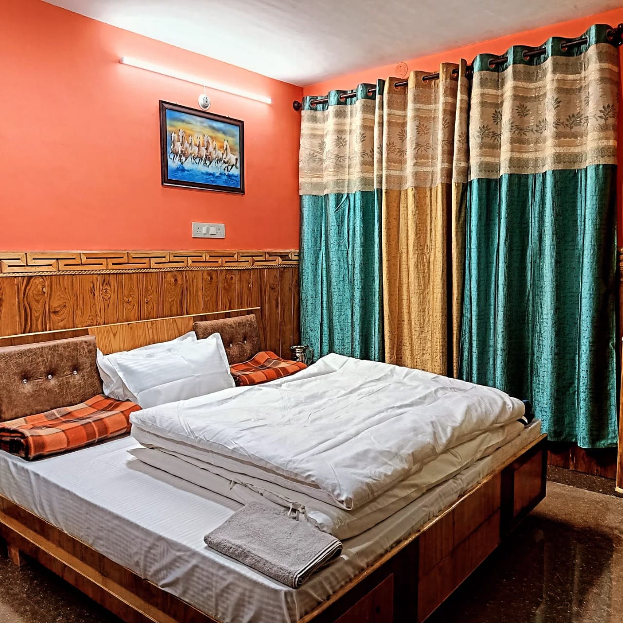 Our Deluxe Room is designed for guests who want both comfort and a warm homely feel. The room comes with a cozy double bed, clean linen, and a spacious attached washroom with essential toiletries.